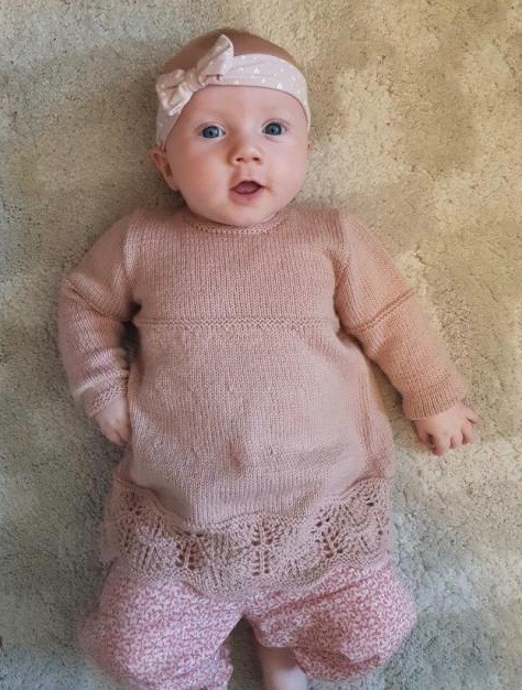 Babykjiole strikket Anina fra Filcolana. Opskrift i str. 3/6 (6/9) 12/18 mdr.